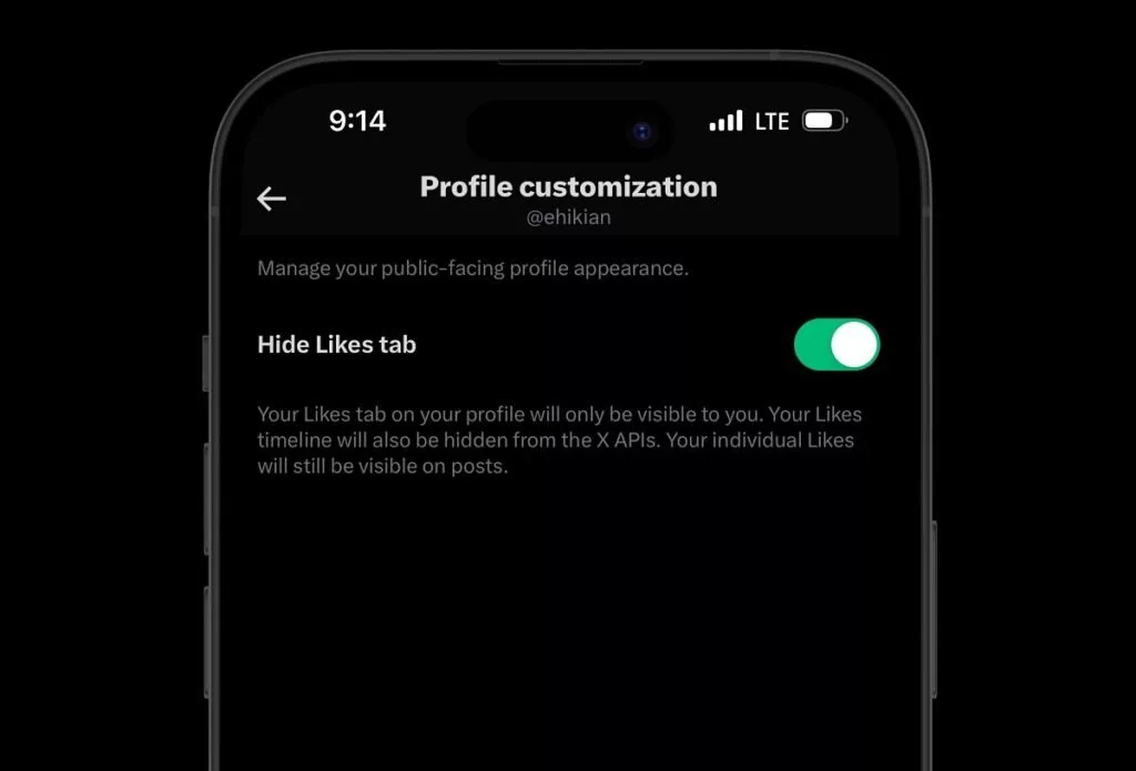 با فعالکردن این ویژگی، تب Likes از پروفایل مشترکین ایکس پریمیوم حذف میشود.